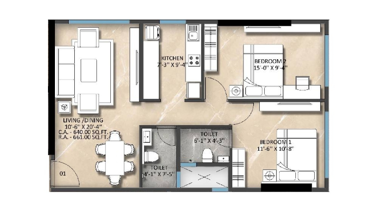 • 3 BHK with Deck